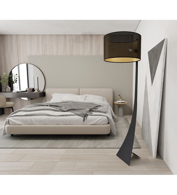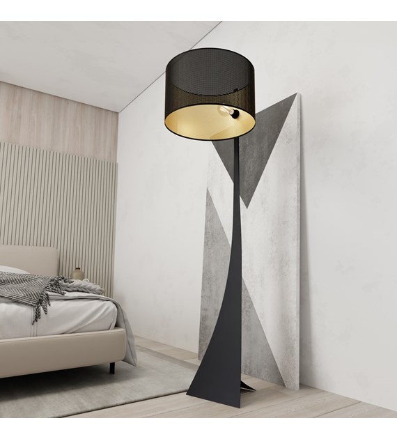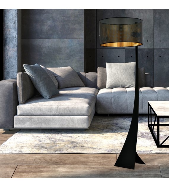 Lampe sur pied ESTRELLA LP1 Noir/Or, grand abat-jour, base originale