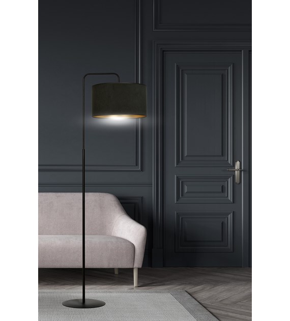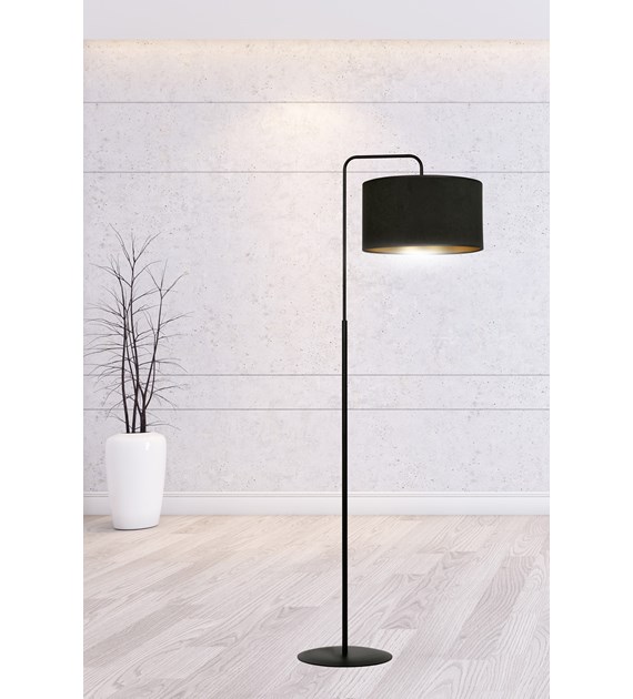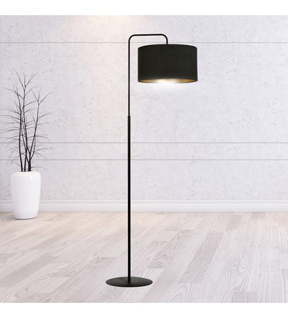 Lampe sur pied HILDE LP1 noire, abat-jour velouté intérieur doré