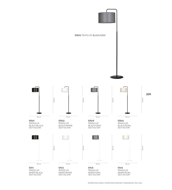TRAPO est une lampe sur pied classique qui s’adapte parfaitement à différents types d’intérieurs – à la fois traditionnels et modernes. Elle se caractérise par un design soigné et une fabrication à partir de matériaux de la plus haute qualité, garantissant une utilisation durable. Sa simplicité et son design minimaliste font qu’elle s’intègre idéalement dans pratiquement tous les intérieurs, quel que soit le style décoratif. La lampe TRAPO se présente magnifiquement dans le salon, la chambre ou le bureau, ce qui lui permet d’être utilisée dans de nombreuses pièces différentes. La série TRAPO dégage une élégance intemporelle et sobre, la rendant adaptée à de nombreuses esthétiques. Produit 100% polonais. Large choix de couleurs d’abat-jour, telles que blanc, noir, écru, gris, gris clair et marron.