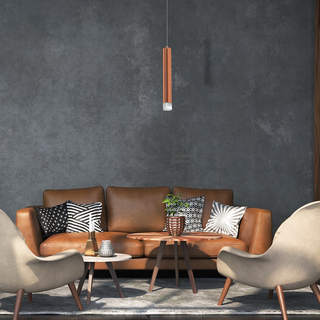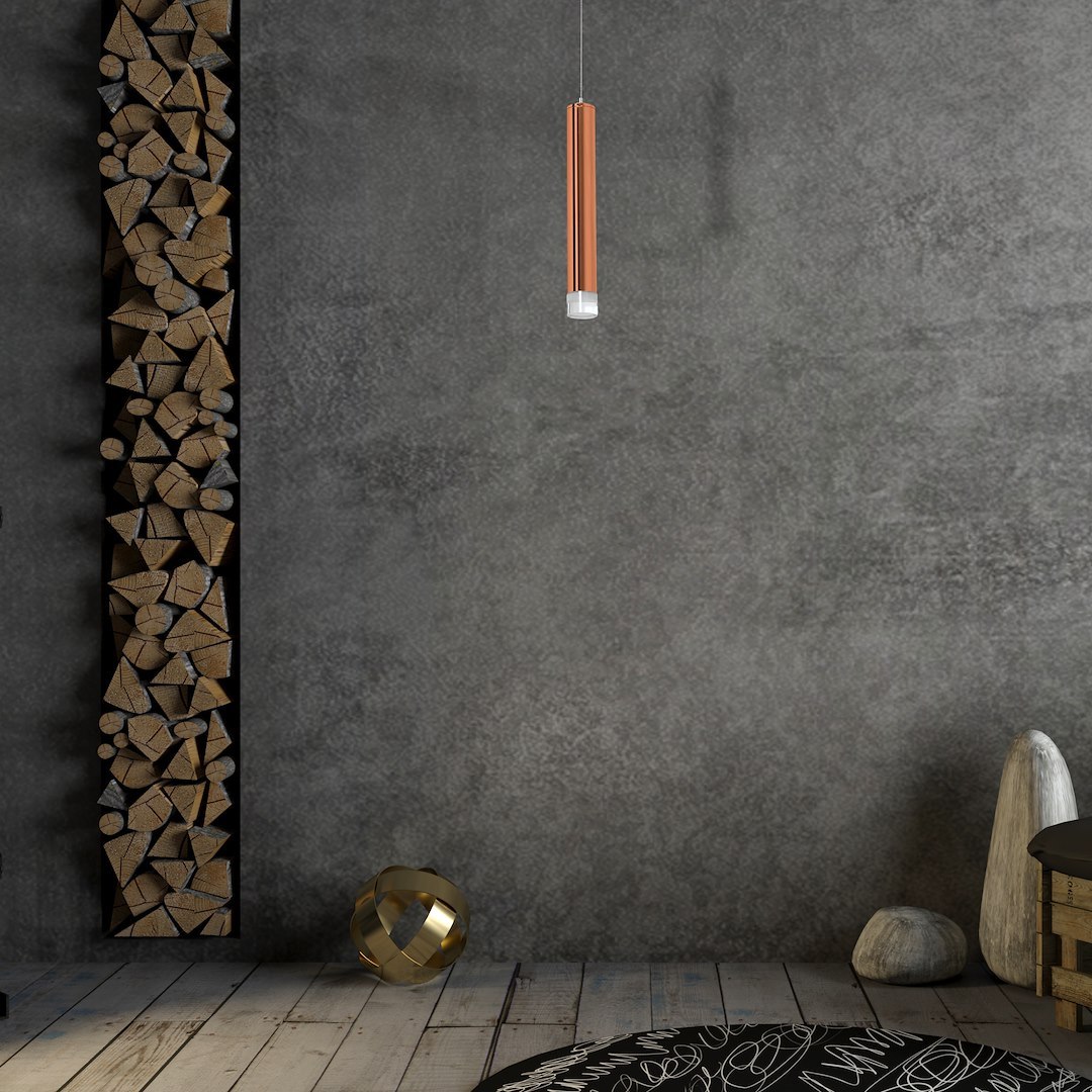 COPPER 984 est une proposition de la société MiLAGRO. Le module LED est enfermé dans un abat-jour en acrylique et intégré dans un boîtier en forme de tube métallique d’un diamètre de 3,5 cm. Le boîtier peut être suspendu à une hauteur de 60 cm à 100 cm du plafond. La suspension réglable permet de placer la lampe à une hauteur adaptée aux besoins des utilisateurs. Ce modèle est suspendu à un plafonnier rond d’une hauteur de 4 cm et d’un diamètre de 10 cm. Le LED écoénergétique intégré au boîtier a une puissance de 5 W. L’alimentation de la lampe atteint 230 V. Le module LED offre une couleur agréable pour les yeux, proche de la lumière du jour. La température de couleur est de 4000 K et le flux lumineux a une valeur de 350 lm.
