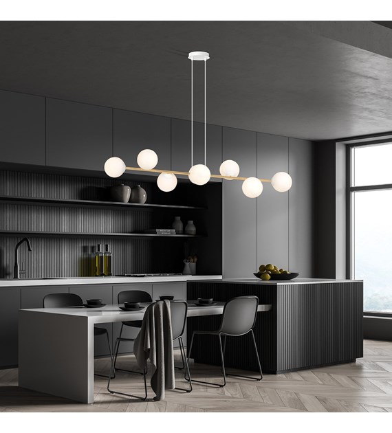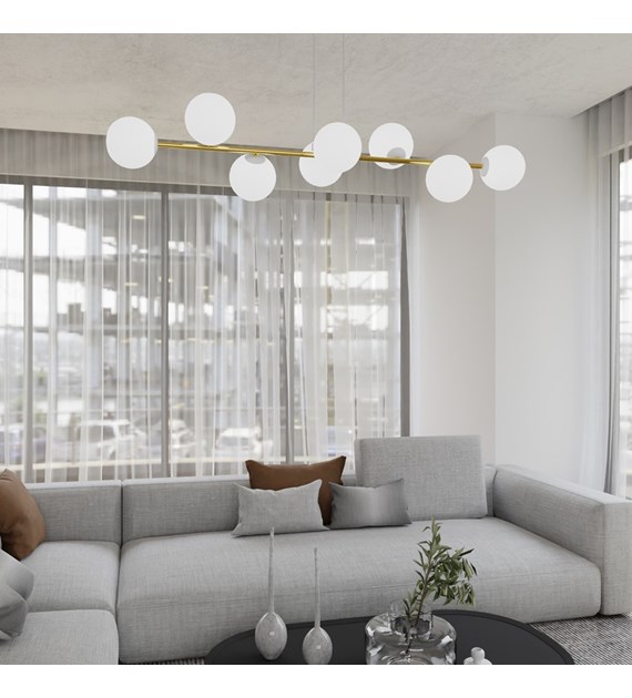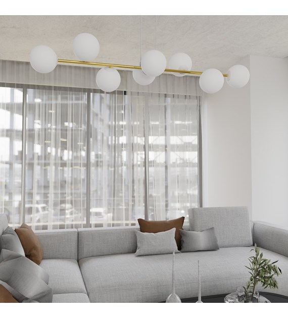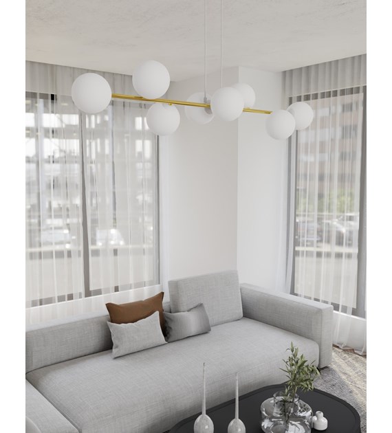 Lampe suspendue GRAVITY 8 blanc & or – minimalisme chic, 8 ampoules