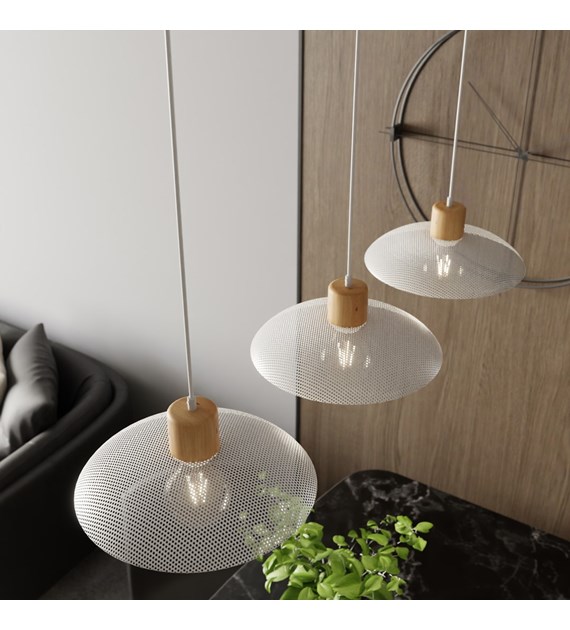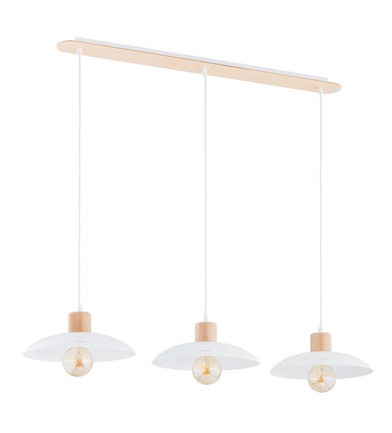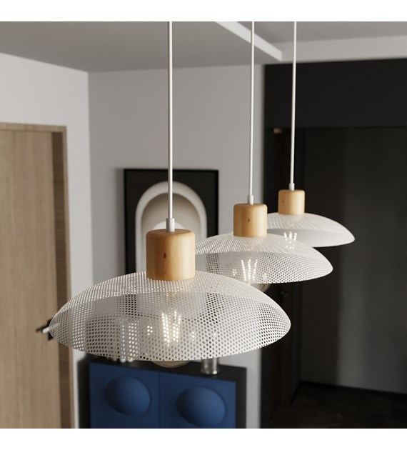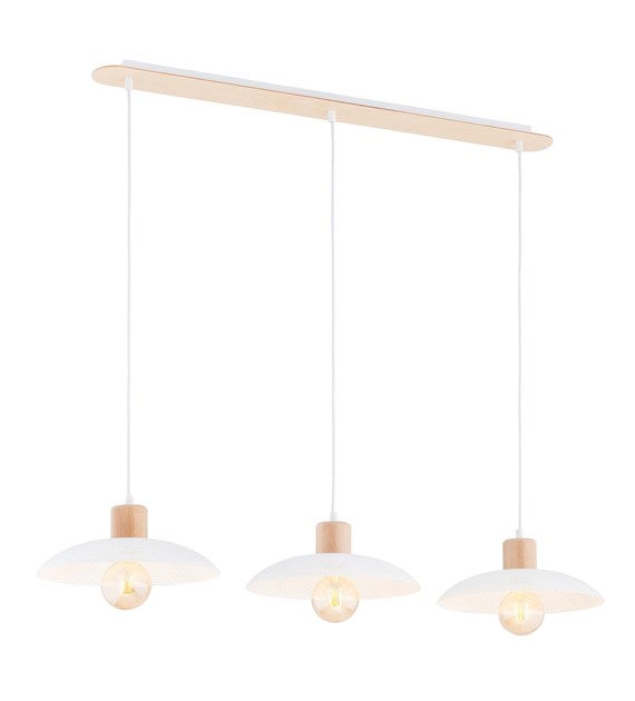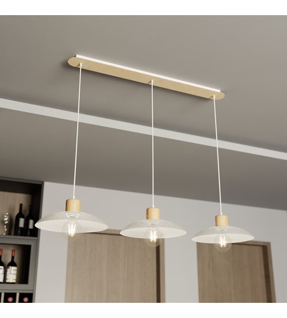 Lampe suspendue industrielle bois et métal KOBE 3 Blanc, style loft