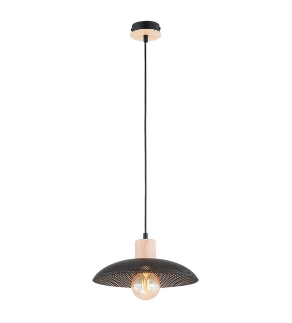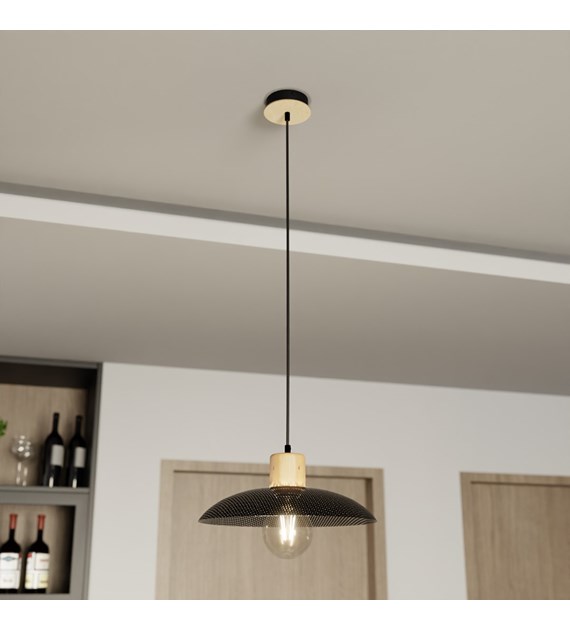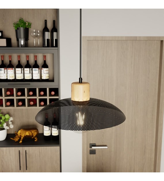 Lampe suspendue KOBE 1 Noir – métal et bois, style loft industriel