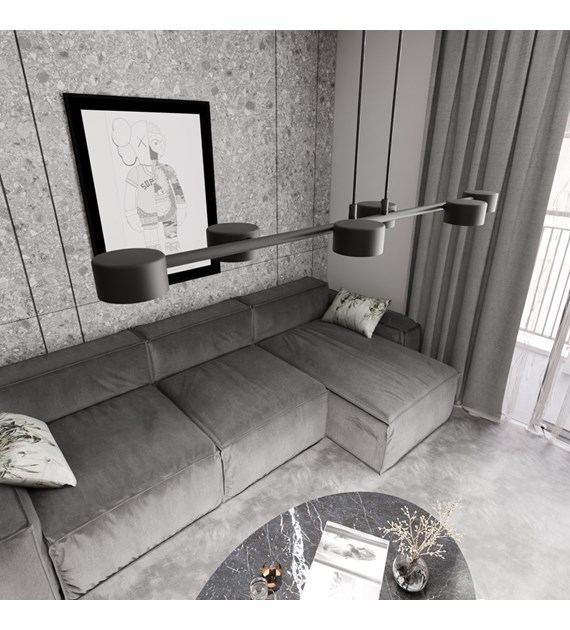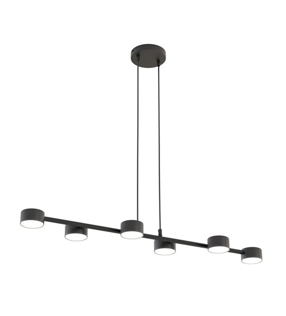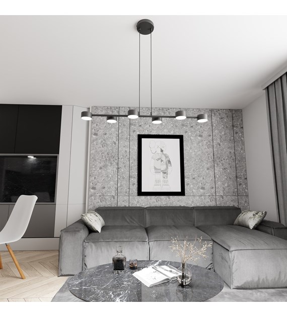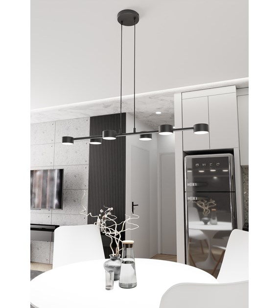 La lampe suspendue Megara est un éclairage moderne au design minimaliste. Huit abat-jours cylindriques répartis uniformément sur une barre horizontale assurent une excellente diffusion de la lumière. La surface noire mate ajoute une touche d’élégance, et la hauteur réglable permet de l’adapter à différents intérieurs. Idéale pour le salon, la salle à manger ou le bureau, elle allie style et fonctionnalité, devenant ainsi un élément décoratif élégant.