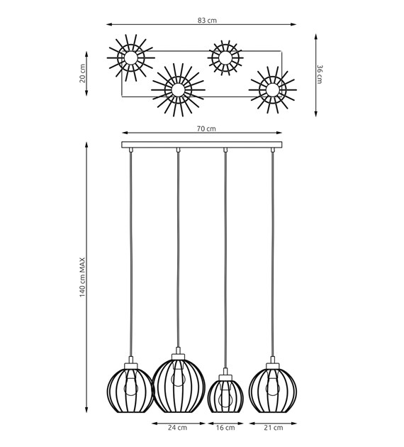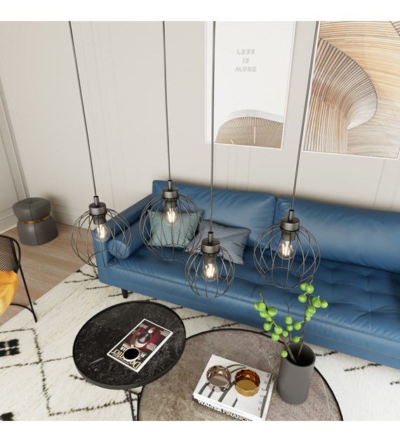 NANDO – Un style loft dans une version moderne. La suspension NANDO est fabriquée en acier solide, ce qui lui confère un caractère brut et industriel. Les abat-jours en fil métallique créent des effets lumineux intéressants, ajoutant de l’originalité aux intérieurs. Idéale pour le salon, la salle à manger et la cuisine, elle apporte à la maison un style loft unique.