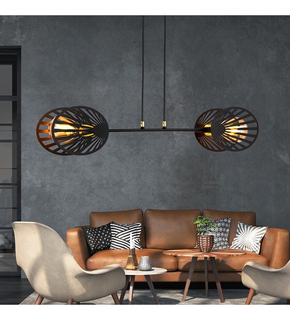PLAYA est une lampe suspendue ultramoderne et unique. Son design se caractérise par des éléments dorés et des abat-jours originaux en forme de palmier, qui ajoutent une touche d’élégance et un aspect luxueux. La lampe PLAYA est parfaite pour les pièces hautes, où elle deviendra le point central de la décoration. Ce produit 100 % polonais est fabriqué avec des matériaux de la plus haute qualité, garantissant durabilité et solidité.