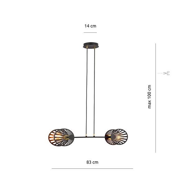Lampe suspendue PLAYA 2 Noir – palmier doré, fabriquée en Pologne