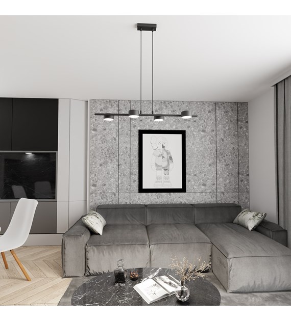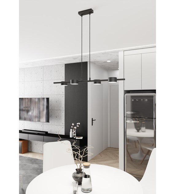 La lampe suspendue SORA est une proposition élégante pour les amateurs de design minimaliste. La barre horizontale élancée avec une surface noire mate lui confère un caractère moderne, s’harmonisant parfaitement avec différents styles d’intérieur. La hauteur réglable permet d’adapter l’éclairage aux besoins individuels. Idéale pour la salle à manger, la cuisine ou le bureau, elle crée une atmosphère agréable et constitue un élément décoratif stylé.