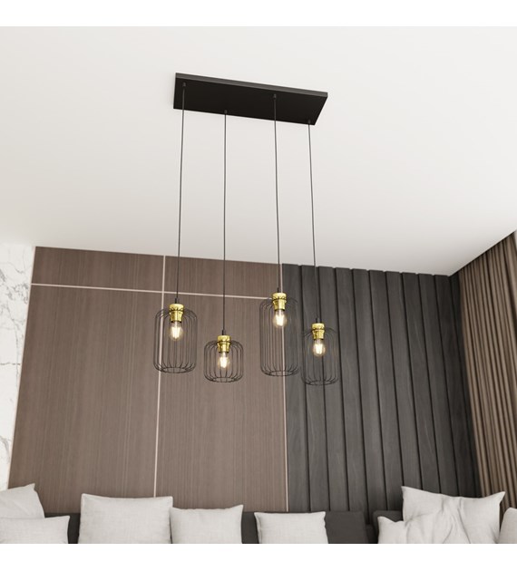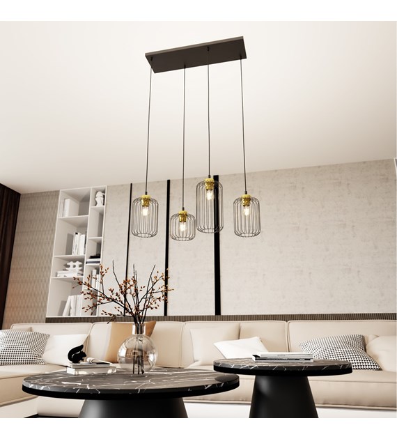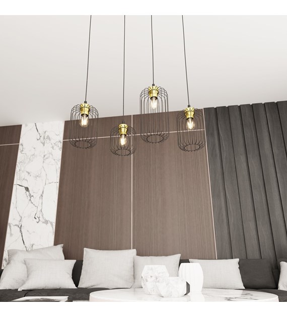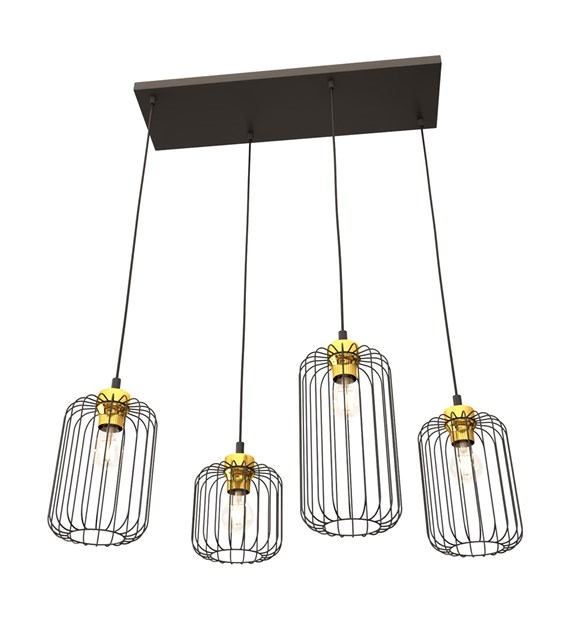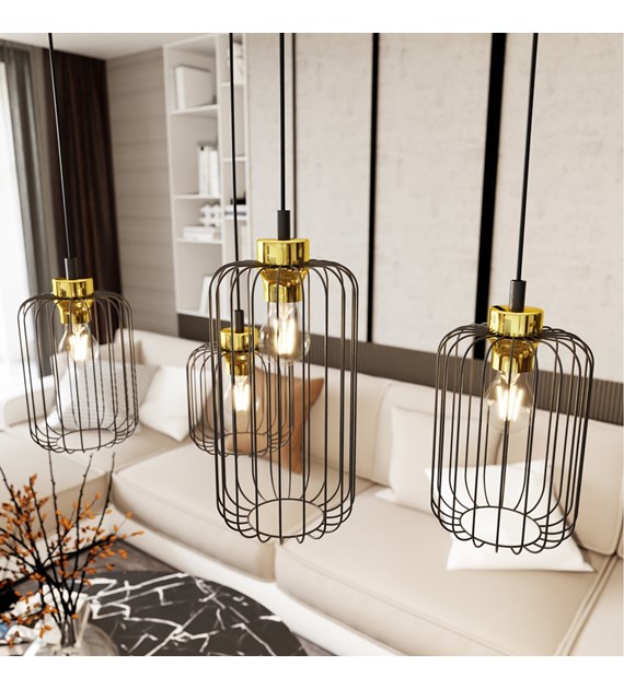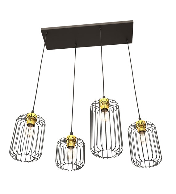 Lampe suspendue VANDER 4 noir & or, cages filaires industrielles