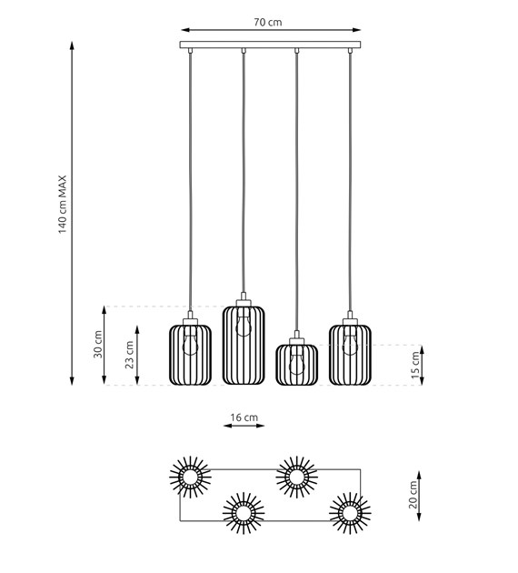 VANDER – C’est la combinaison parfaite du style loft et industriel. Fabriquée en acier résistant, la lampe VANDER possède des abat-jour en fil de fer uniques qui créent des effets lumineux intéressants et soulignent son caractère brut. Elle est idéale pour le salon, la salle à manger, la cuisine ainsi que les espaces commerciaux, ajoutant de l’originalité et un design moderne aux intérieurs.