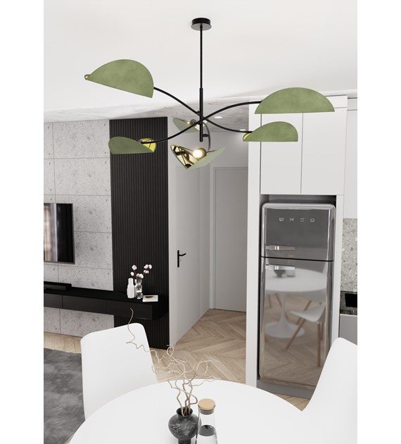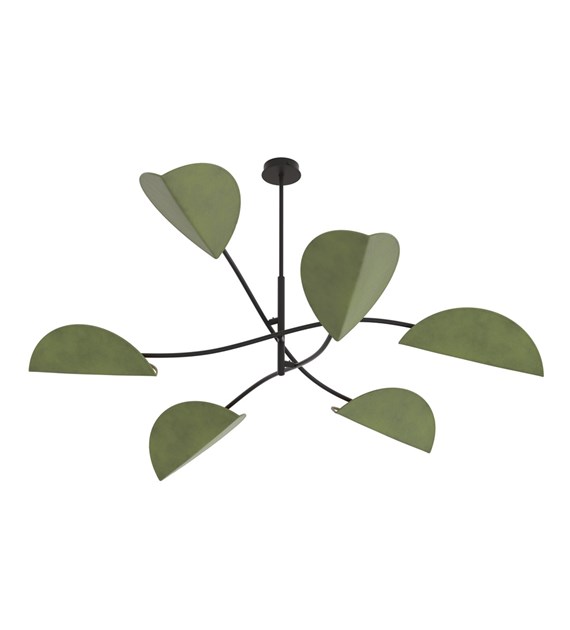 Plafonnier LOTUS vert, style ethnique, 6 lumières, flux homogène