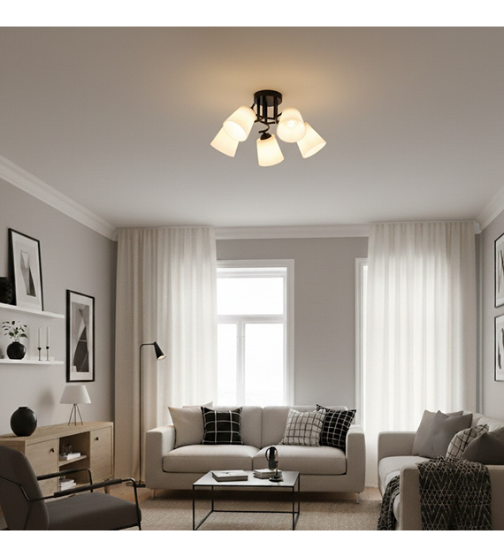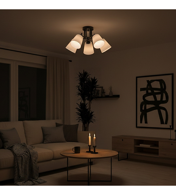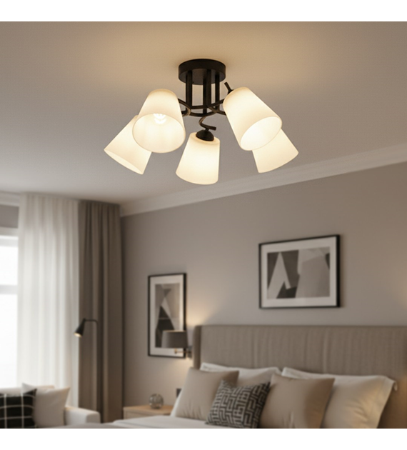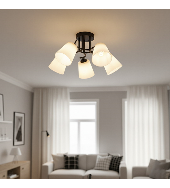Seria Pafos est une élégante collection d’éclairages de plafond et d’appliques murales qui combine des éléments métalliques avec du verre décoratif, créant ainsi des compositions harmonieuses et modernes. Les luminaires sont disponibles en version noire et chromée, avec des variantes allant d’un à cinq points lumineux, ce qui te permet de les adapter facilement à la superficie et à la fonction de la pièce. La forme classique des abat-jour et le design subtil font que Pafos est idéal pour le salon, la salle à manger ou le couloir. L’installation ne nécessite aucun ajustement – il suffit de les visser au plafond ou au mur.