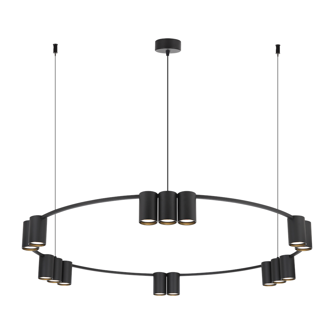 Suspension anneau genesis 15 lumières en aluminium noir 56mm