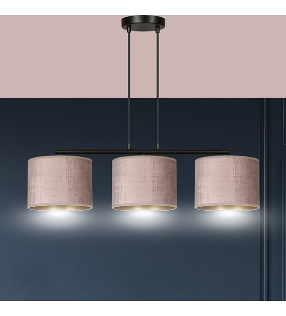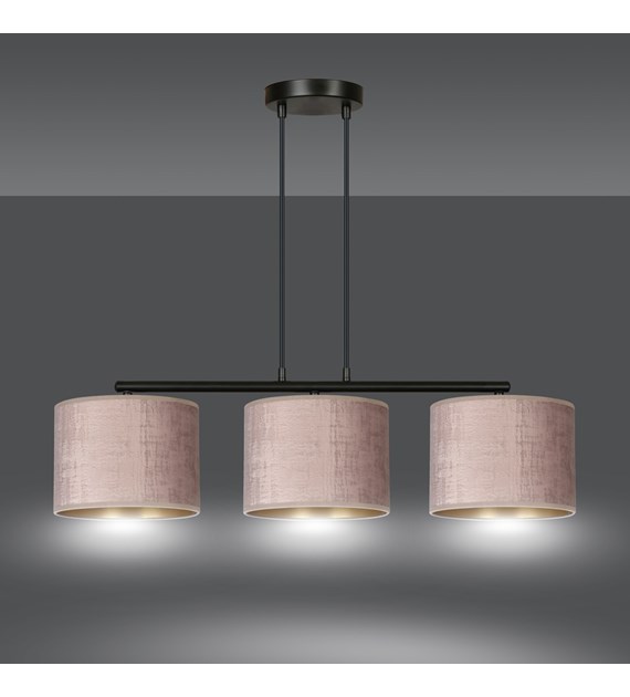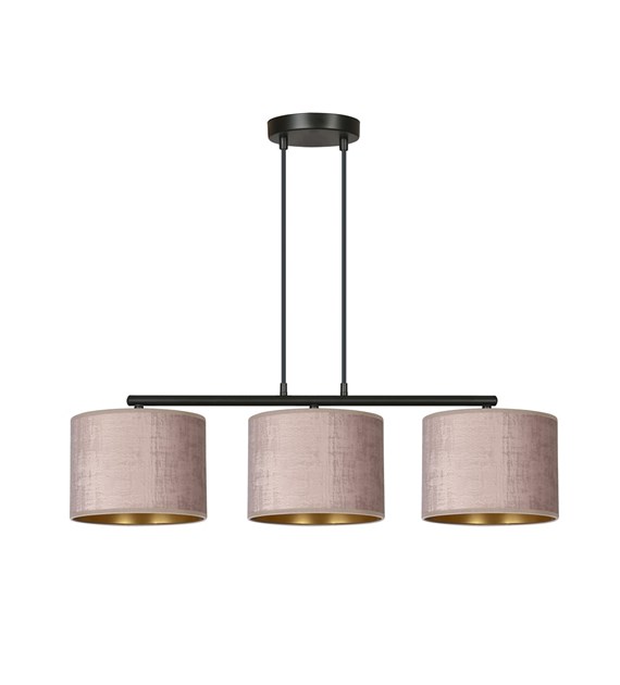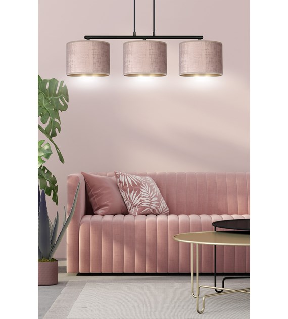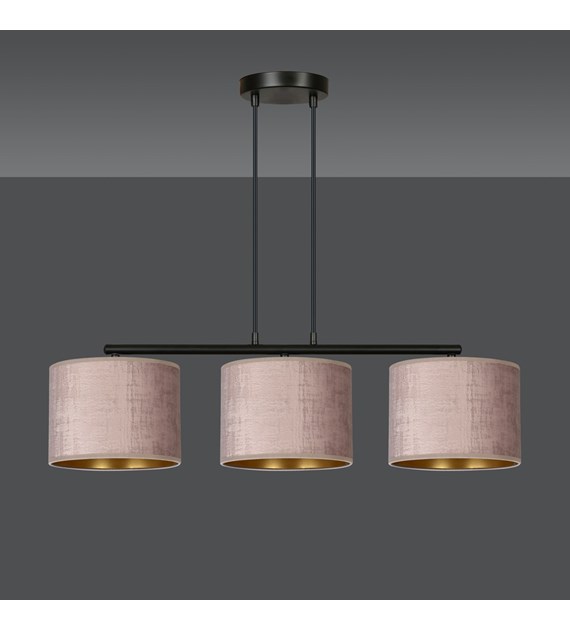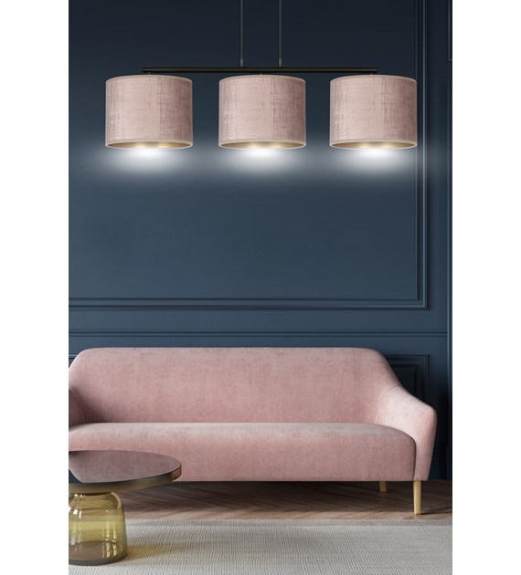 Suspension HILDE 3 lumières velours rose, intérieur doré