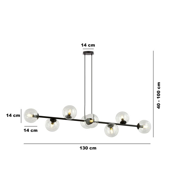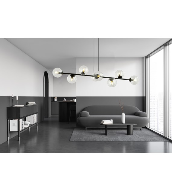 Suspension ROSSI minimaliste 6/8 sources, verre, noir/blanc, Pologne