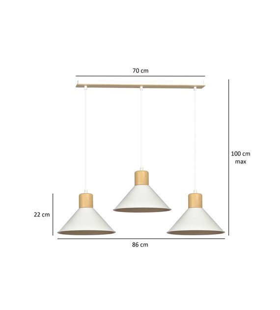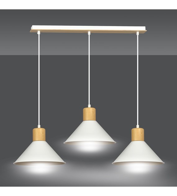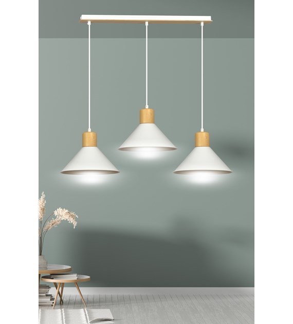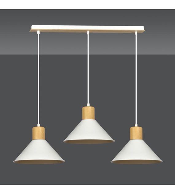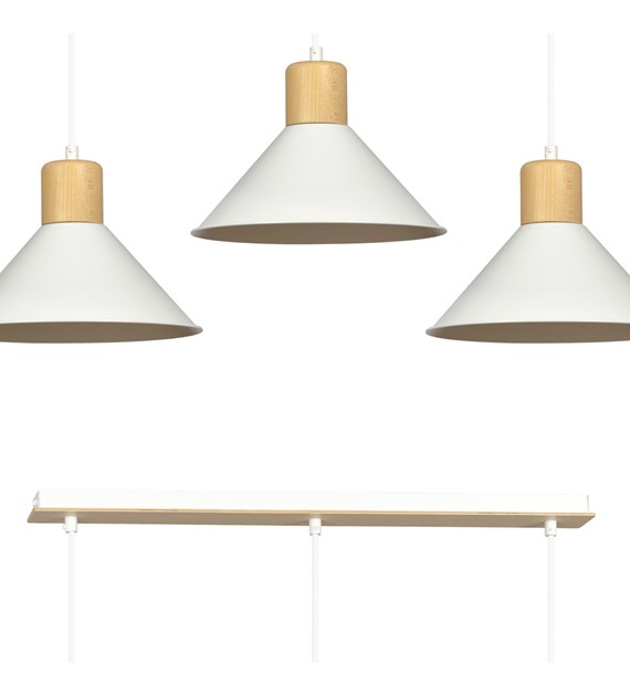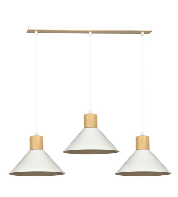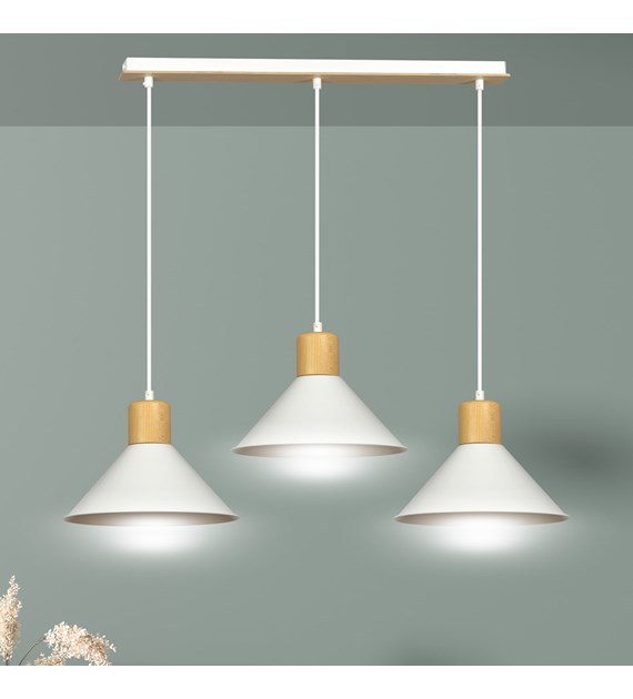 Suspension ROWEN 3 Blanc – design scandinave, métal & bois