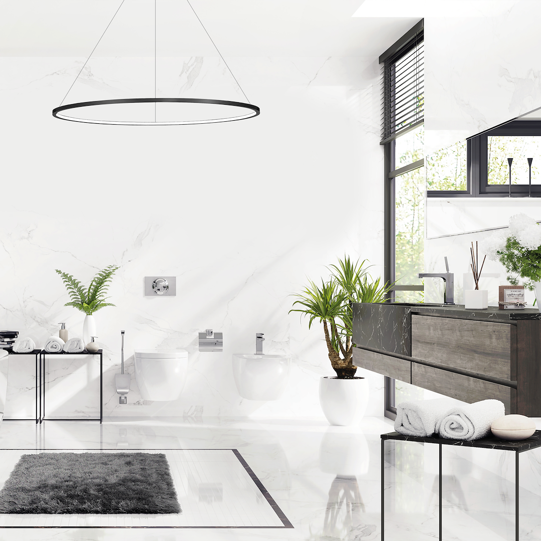 Découvrez la Suspension Saturno Noire 65 W LED, un luminaire moderne qui s'intègre parfaitement dans divers styles d'intérieur. Que ce soit dans une salle de bains contemporaine ou un espace de vie minimaliste, sa lumière neutre de 4000 K rehausse chaque décor.