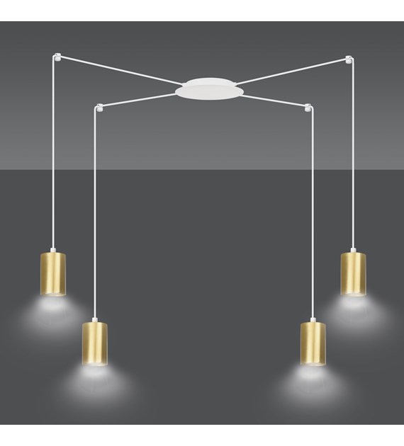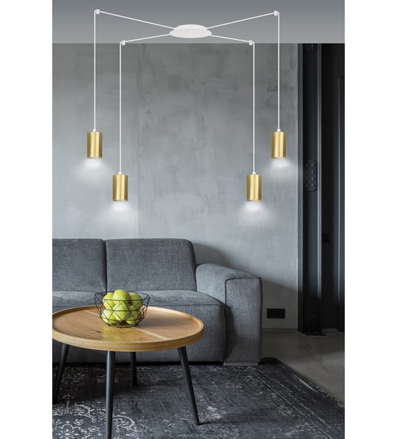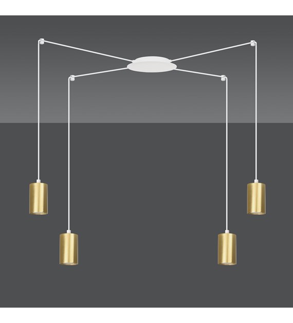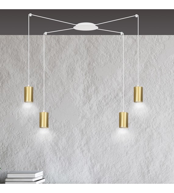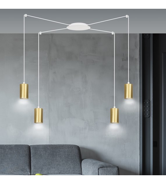 TRAKER 4 Blanc/Or – Luminaire suspendue araignée, câbles longs, métal