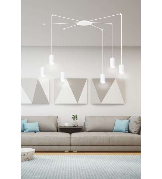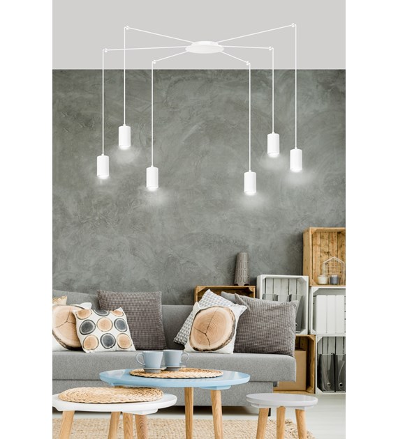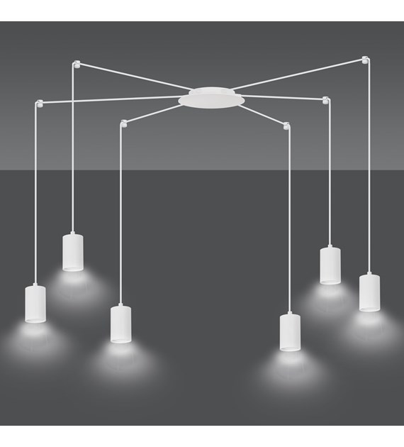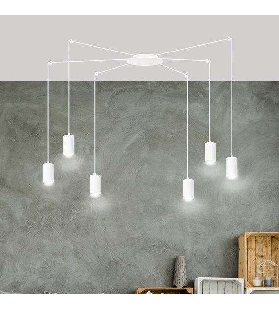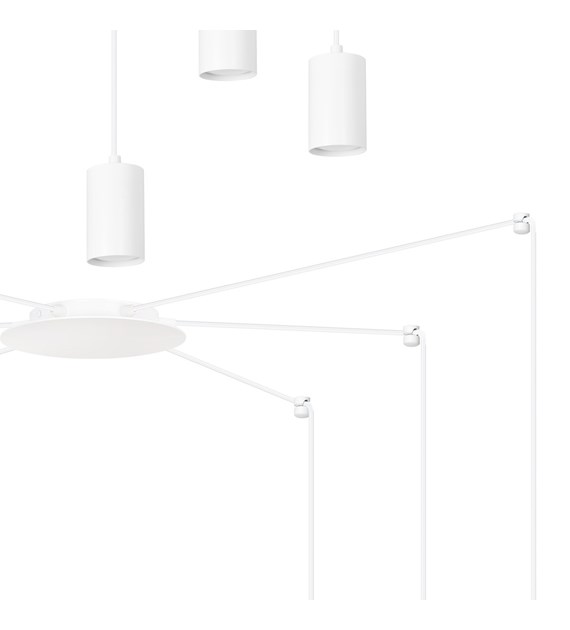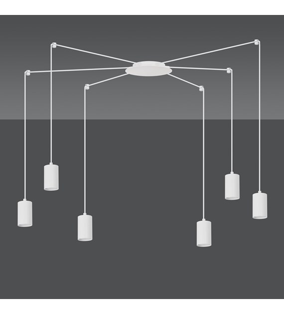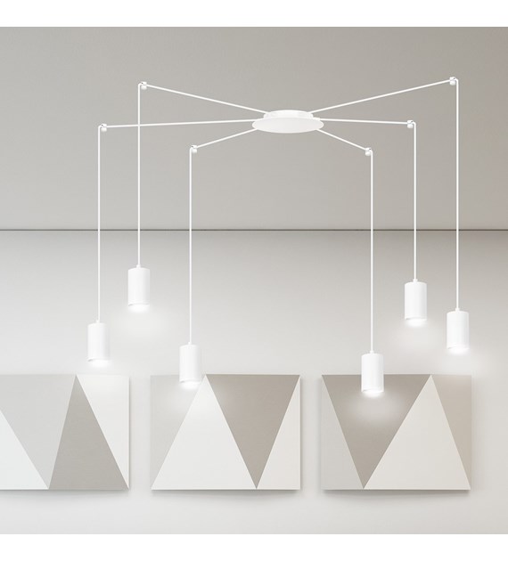 TRAKER 6 Luminaire suspendue araignée, câbles longs, métal blanc